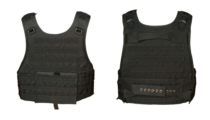 此款防彈衣遵循NIJ0101.06 等級(jí)II-IIIA,凹陷小于44mm, 采用高模量聚乙烯或者凱夫拉,防護(hù)等級(jí)可通過(guò)在(前/后)增加防護(hù)插板升級(jí)。